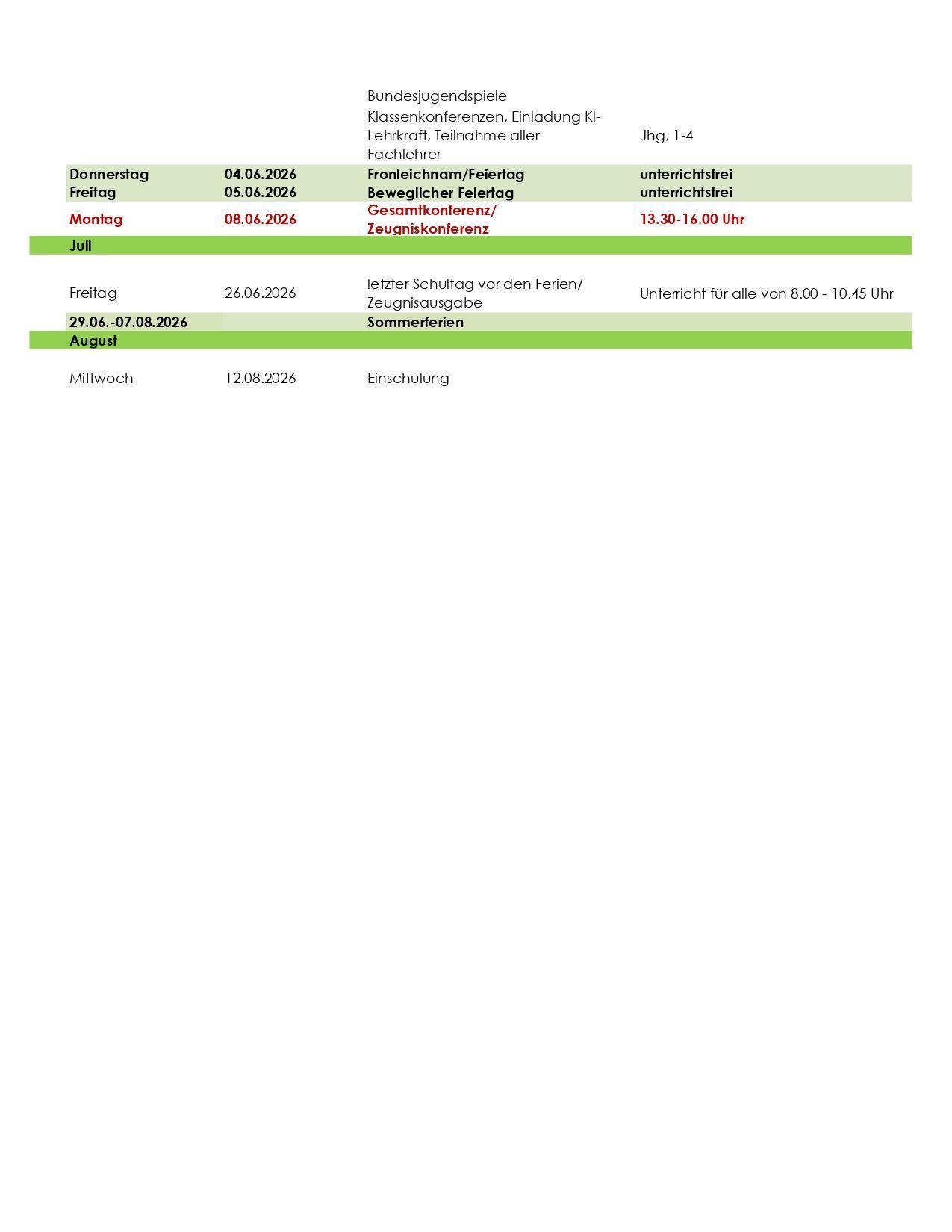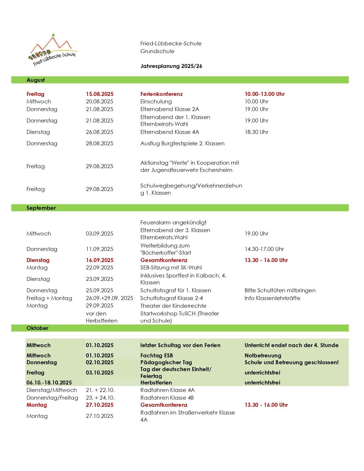 Jahresplanung für das Schuljahr 2025/2026